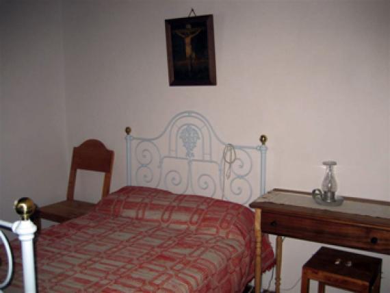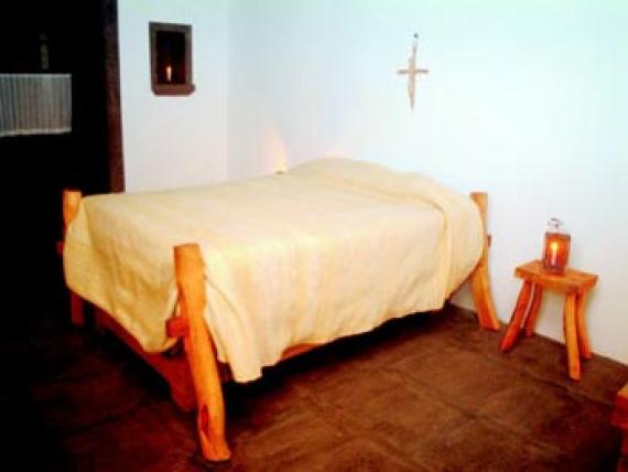 Ao entrar da porta nota-se imediatamente um tabique primitivo, feito em cana que dá alguma privacidade à área de dormir equipada com cama da época, que permite zona de arrumos por baixo e objectos de utilização referentes à época.