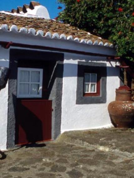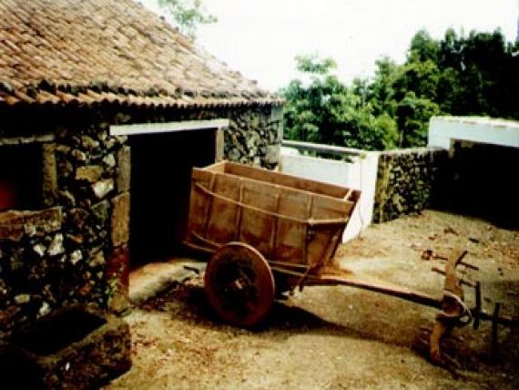 À l'extérieur, tout en sortant du cellier, on passe par le cabinet d'aisance, suivent les bassins de rinçage, jusqu'au l'eau de la citerne était conduite par tuyaux en terre-cuite, l'eau de pluie que recueillait la plus grande terrasse des Açores, en raison du besoin d'eau dicté par la culture de l'orange.